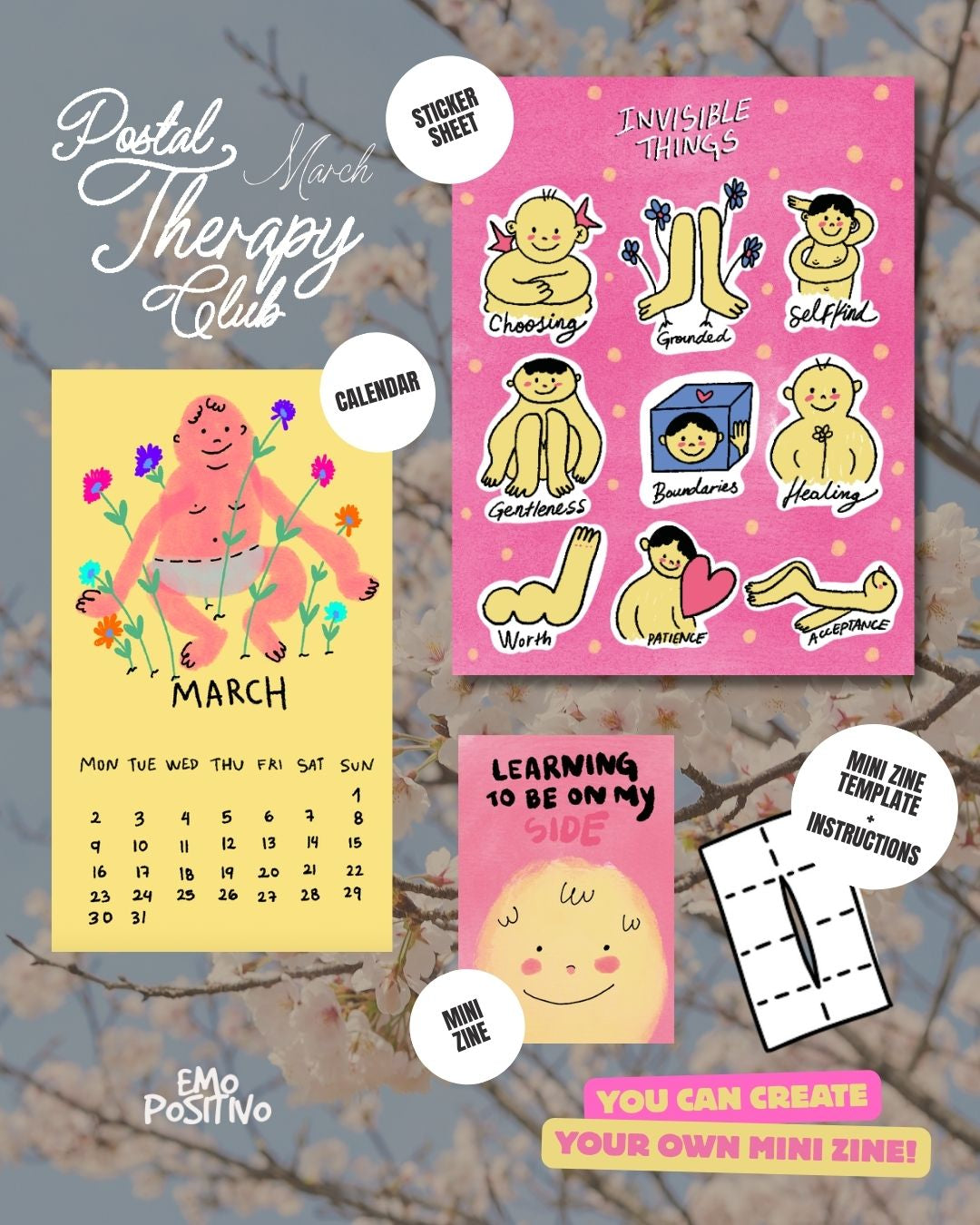 Sticker Sheet - Funny Emotional Stickers, Self-Love & Mental Health Art
